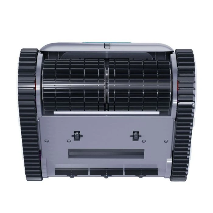 Cleans floors, walls, and scrubs waterline. Intelligent 4-wheel drive cleanering with gyroscope driven cleaning accuracy. Dual filtration down to 100 microns. Weekly timer for scheduled cleanings. Water and air sensors with beach entry. Self-park when cycle is complete.