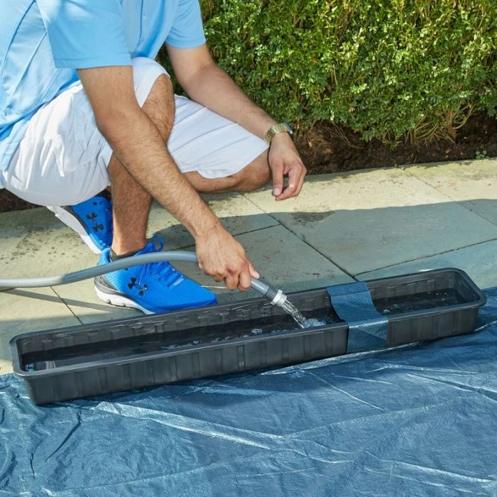 A reliable method for holding your winter pool cover in place. Made of high-density polyethylene which is more durable and longer lasting than traditional water bags. Just fill with water and snap on pool cover. 3 ft L x 7.25 in W x 3.25 in D