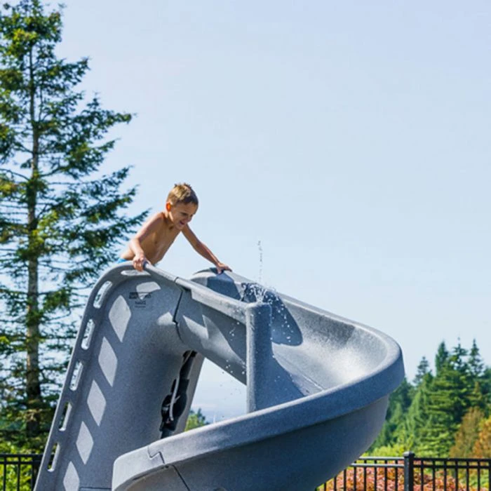 The S.R. Smith heliX2 Swimming Pool Slide offers Serious Fun all the way around with a 360-degree flume and patent-pending fountain feature. Its fully roto-molded construction provides strength and durability for years to come. Like the TurboTwister and Typhoon, the heliX2 slide features an enclosed ladder and molded handrails to ensure maximum safety. Fewer parts mean assembly is faster and easier than slides of similar design. The heliX2 is fully CPSC compliant and accommodates sliders up to 250 lbs.